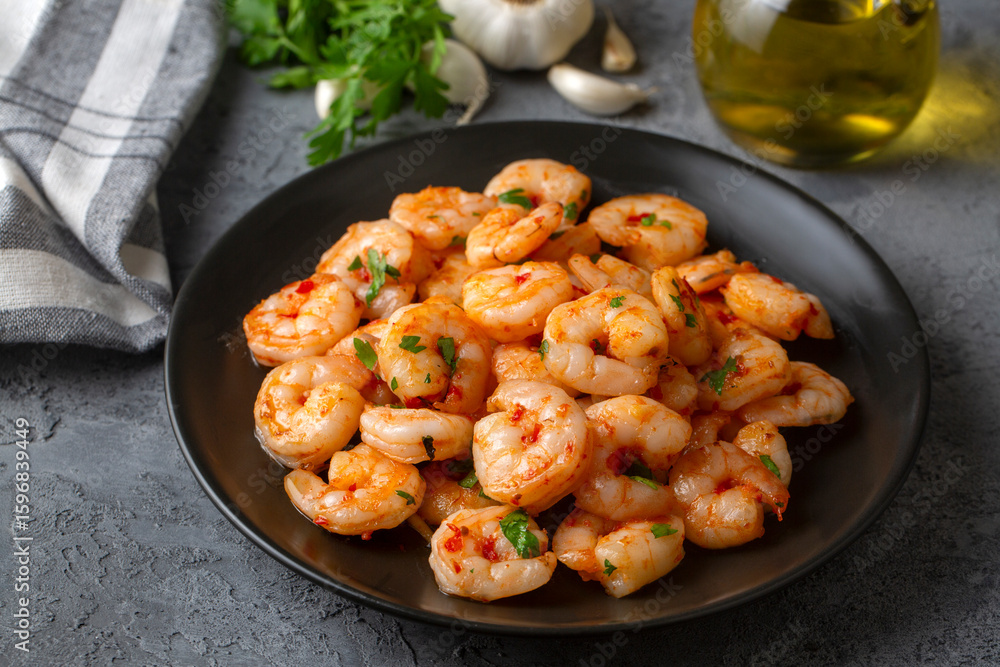 Delicious seafood, grilled shrimp - Shrimp frying pan
