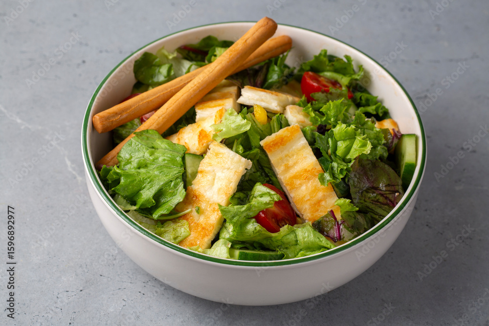 Grilled Halloumi Cheese Salad. Food concept photo.