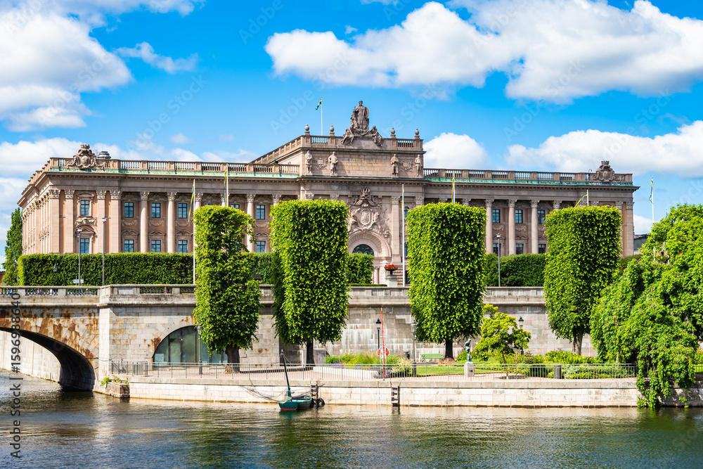 Beautiful historic building of Parliament House Riksdagshuset in Stockholm, Sweden