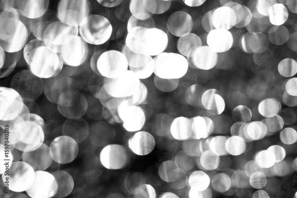 Numerous bright, soft-edged circles overlap in this grayscale abstract image, forming a luminous bokeh background.