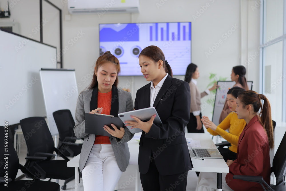 Group of business people discussing work together and analysis data in a meeting room,