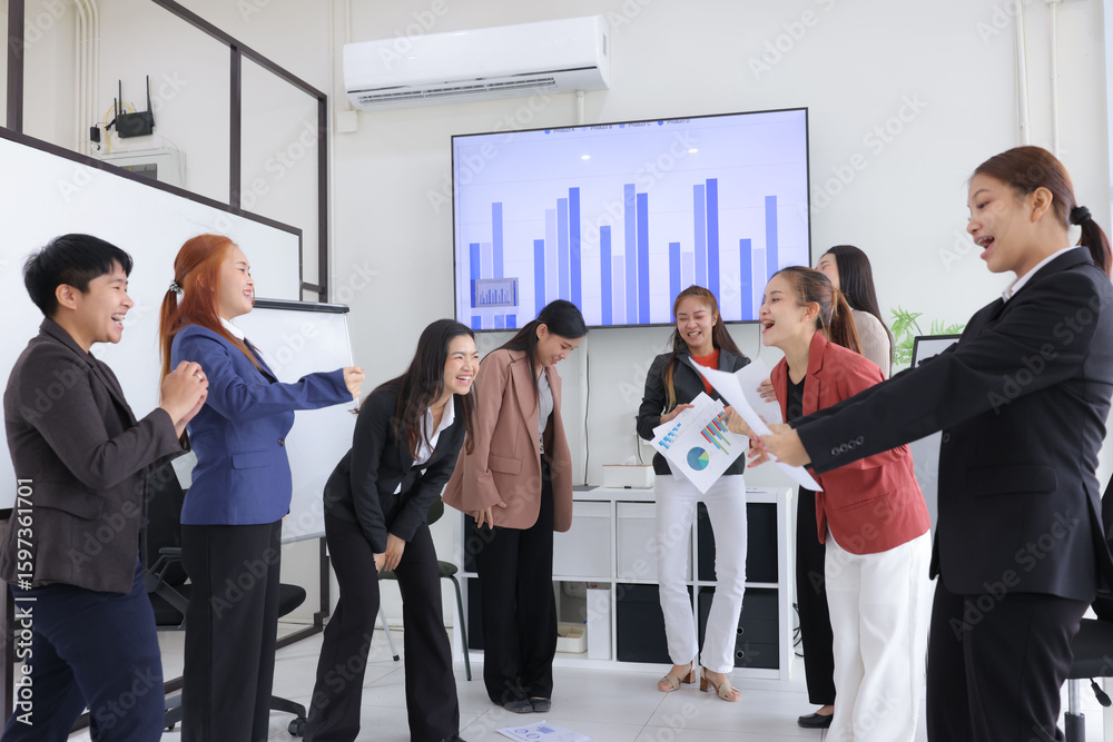 Happy Teamwork business people celebrate winning in a meeting room, happy employee group.