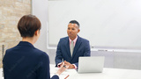 ビジネス、ミーティング、男性、ビジネスマン、グローバル、面談、相談、面接、会議、英会話、英語、商談、交渉、会議室、外国人、黒人、インバウンド、指導、申請、受付、窓口、就職、登録、手続き、事務、オフィス、企業、会社、エージェント、アドバイザー、コンサルタント、コンサルティング、契約、依頼、ビジネスパーソン、キャリア、転職、外資系企業、国際化、多国籍、日本人、スーツ、仕事、説明、営業、案内、ノートパソ