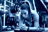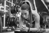 Fitness woman with doing plank in gym.