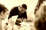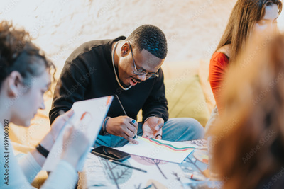 Art enthusiasts spending time together engaging in creative painting activities, sharing ideas, and relaxing.