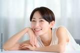 ノースリーブで明るい部屋にいる日本人女性のビューティーイメージ