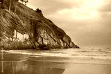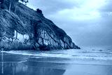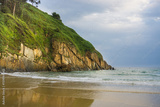 Amazing landscape with ocean, cliffs, beach, greens and flowers in summer day; wallpaper of the Bay of Biscay, Cantabrian Sea