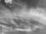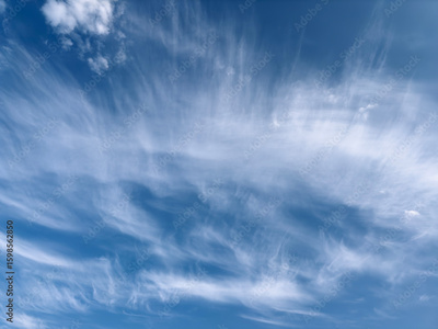 Sky with cirrus clouds. Wispy feather-like formations in bright blue atmosphere, soft texture, clean