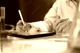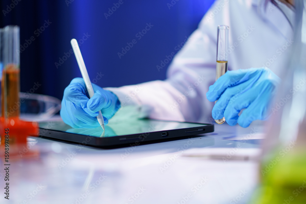 Scientist recording the results of the study in a laboratory journal.