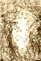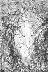 Negative effect tree hollow on a very old plane tree with ivy tree on it. Abstract. Decor. Copy space. Book cover.