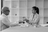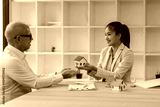 Estate business agent giving house Real estate transaction with agent giving house keys to client over a contract, calculator on table.