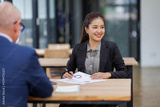 Businesswoman financial expert analyzes business report graph and chart at the office. Concept of financial economy and marketing research.