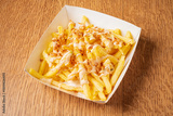 Crispy fries topped with creamy dressing and crunch, perfect for sharing!