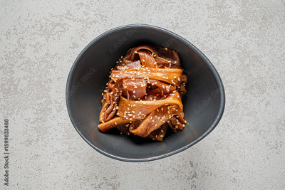 Glossy hand-cut noodles with sesame seeds showcase delightful culinary artistry