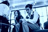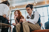 Team members discussing ideas in a creative and natural light-filled workspace, fostering collaboration and innovation in a modern office environment.
