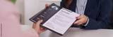 Human resources professional receives job applicant resume for new career opportunity in modern office setting