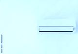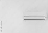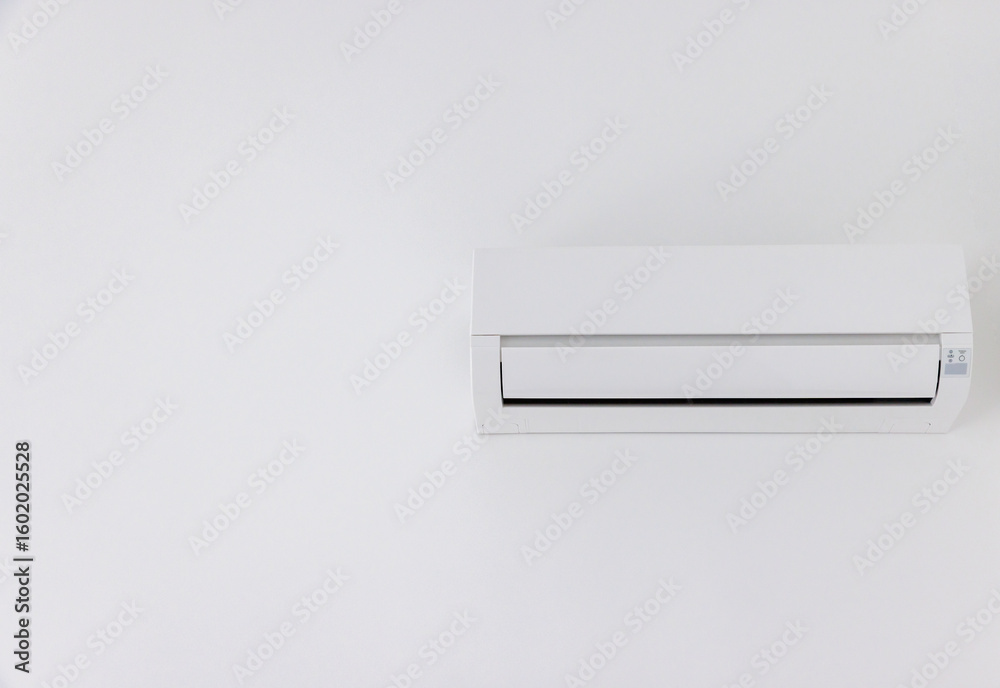 White Air Conditioner Split Unit Mounted at white wall in room. Wall Air Conditioner on white background
