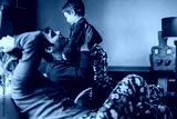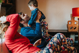 Family members enjoying quality time in warm home environment with festive pajamas, expressing togetherness, love, and joy during a celebratory and cozy occasion
