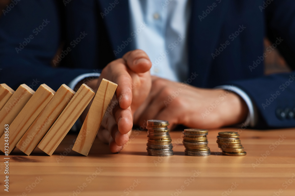 With practiced hand, man supermarket worker arrange tomatoes in neat pyramid by window. Male seller of vegetable department of store replenishing showcase with tomato, puts ones on showcase