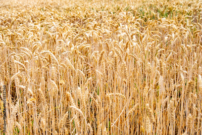 Golden ripe wheat field ready for organic harvest, ripe wheat ears, agricultural abundance and food production, healthy grain, environmentally friendly farming practices, Sustainable agriculture