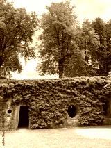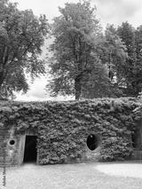 A Beautifully Overgrown Stone Structure Covered in Ivy, Featuring Circular Openings, Surrounded by Lush Greenery that Creates a Stunning Atmosphere and Invites Exploration in Nature