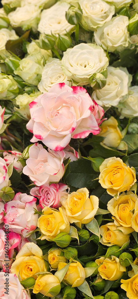 Beautiful bouquet comprising with variety of colorful roses flower texture