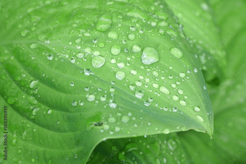 close up on green leaves texture with rain drop