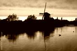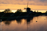 Silhouette windmill against romantic sky at sunset in the Netherlands