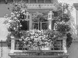 Balcony plant and flower pots garden with colored boxes nature Italian trellis