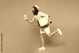 Traveler profile young man hold passport ticket bag be in rush isolated on plain purple background Tourist travel in free time rest getaway Air flight trip journey summer vacation sea sun tan concept
