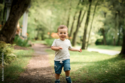 cute little baby boy portrait on forest
