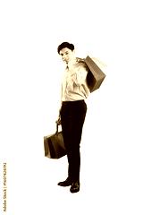 Shopping Spree: A stylish individual, bags in hand, embodies retail therapy with a casual flair. Capturing the essence of consumerism and urban lifestyle.