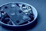 Bar sweet craft artisan chocolate with dried fruits made at home. Craft chocolate
