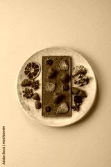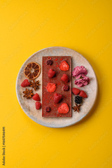 Bar sweet craft artisan chocolate with dried fruits made at home. Craft chocolate