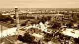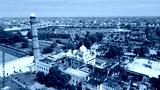 An aerial image of the Pakistan monument, A Sikh Gurdwara located beside the Badshahi Mosque in Lahore.