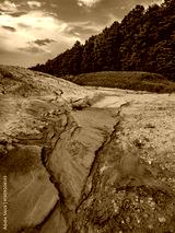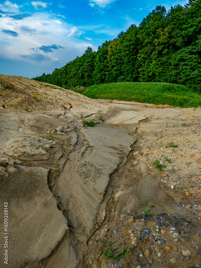 Risse und Furchen im Lehmboden nach starken Regenfällen