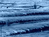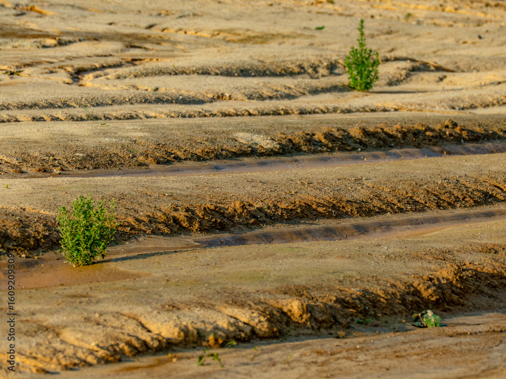 Risse und Furchen im Lehmboden nach starken Regenfällen