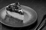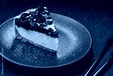 Pie, cheesecake with raspberries and blackberries, mascarpone cheese. Piece of cheesecake