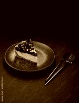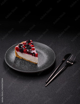 Pie, cheesecake with raspberries and blackberries, mascarpone cheese. Piece of cheesecake
