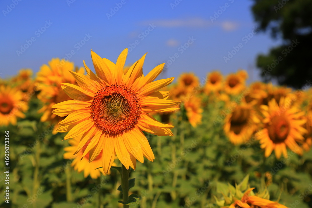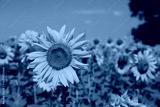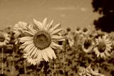 Large yellow sunflower bloomed on farm field in summer. Agricultural industry, sunflower oil, honey.