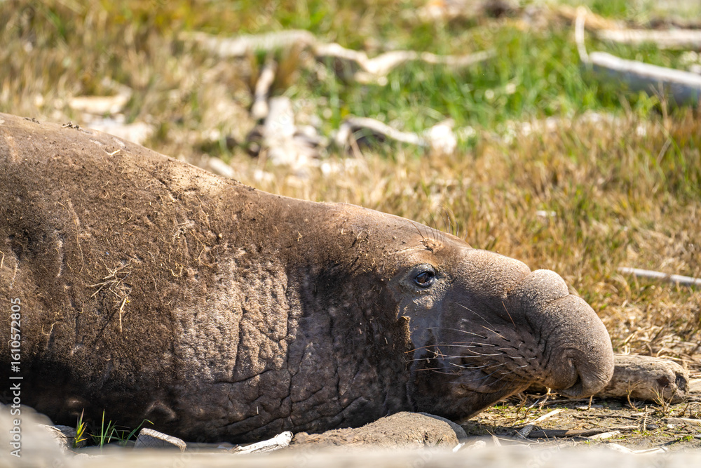 Close-up of Male Northern Elephant Seal on Coastal Sand, Drakes Beach, CA