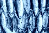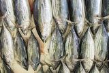 Top down view on many rows of freshly caught fish for sale in Male,Madives