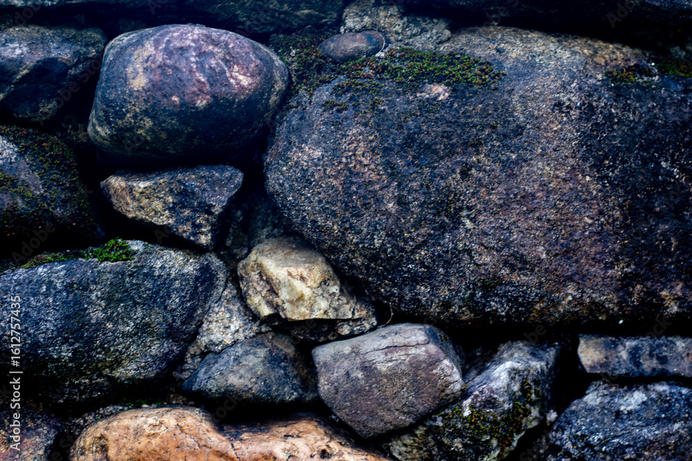 The surface of the large stones stacked together is rough and old, appearing abstract.