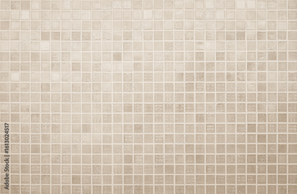 Cream light ceramic wall and floor tiles mosaic background in bathroom and kitchen. Design pattern geometric with grid wallpaper texture decoration pool. Simple seamless abstract surface clean.