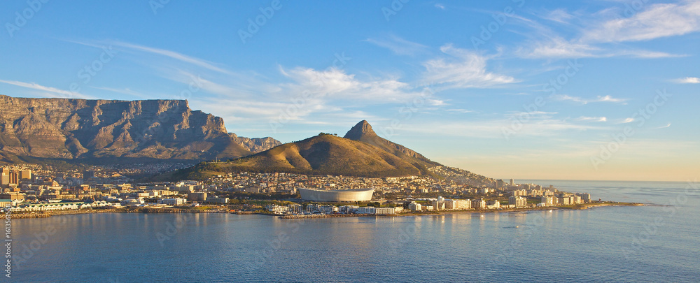 Beautiful landscapes of Cape Town, South Africa, at sunset - city centre, Chapman's Peak, Table Mountain, and the Twelve Apostles