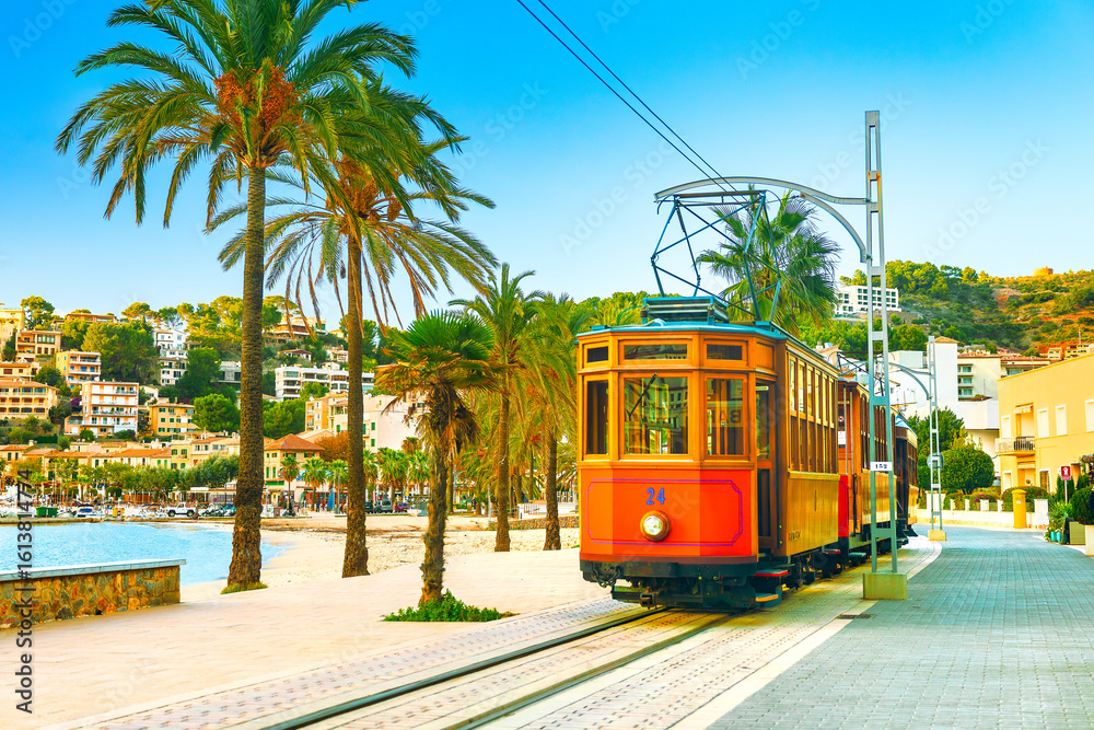 The famous orange tram runs from Soller to Port de Soller, Mallorca, Spain