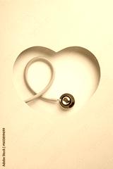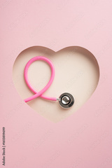 Symbolic vertical image of a pink stethoscope within a heart cutout representing health awareness