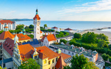 Sunny landscape of the resort town of Sopot and Molo - pier on the Baltic Sea. Poland