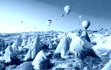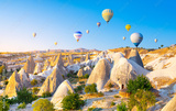 Sunrise view of unusual rocky landscape in Cappadocia, Turkey
