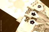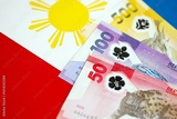 Philippines peso currency money bills lies on flag. The concept of business and investment